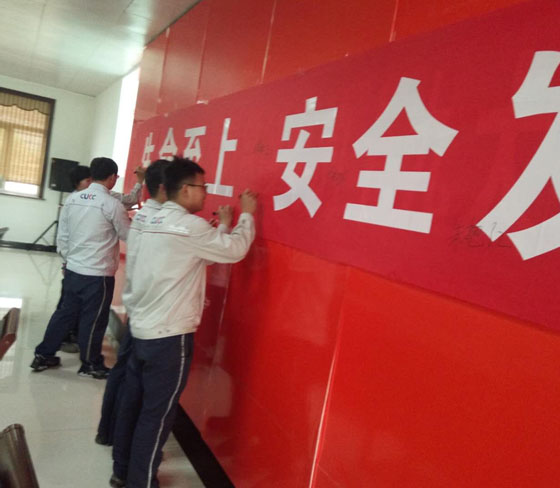 (5)公司安全誓詞:企業(yè)安全生產(chǎn)是我的崇高職責(zé),為了公司安全生產(chǎn),為了家庭幸福美滿,我們一定要做到“安全時刻在線,幸福相伴終生”,堅決履行自己的安全職責(zé),遵守安全操作規(guī)程、規(guī)章制度,自覺做到不傷害自己、不傷害他人、不被他人傷害;堅決完成安全生產(chǎn)任務(wù),做一名本質(zhì)安全型員工!